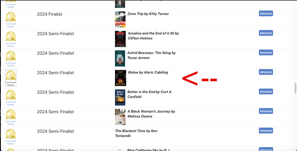Below was a semi-finalist in the 2024 Indies Today Book Awards.